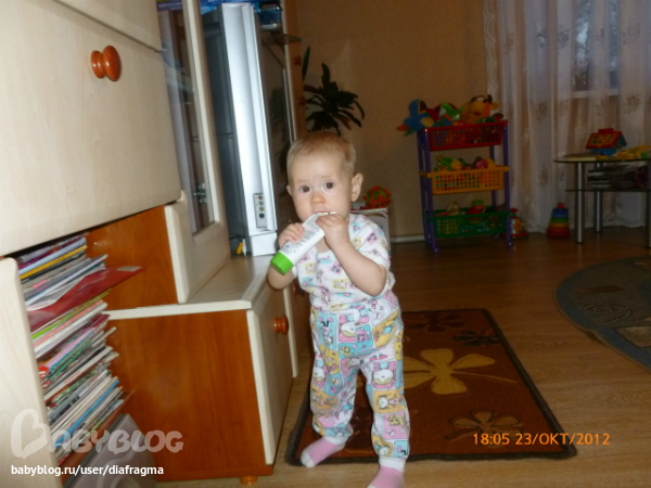 Итак, нам уже 9 мес!что мы умеем: Аришка научилась быстро ползать,правда ползает все так же на одной коленке,а вторую ногу ставит на стопу и отталкивается ей.меня это напрягало, сьездила к неврологу платно в екатеринбург,благо ездили в гости к бабуле.нерголог сказала,ничего страшного не видит,типа она так привыкла ползать.но у нас экстрапирамидные нарушения,тонус повышен в голеностопн.суставе не дает сгибать ноги,особ.правую. невролог выписала глиатилин по пол капсулы в день,массаж,гимнастику. на массаж записались на конец ноября.
