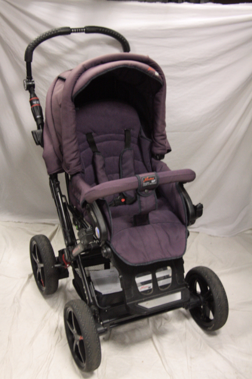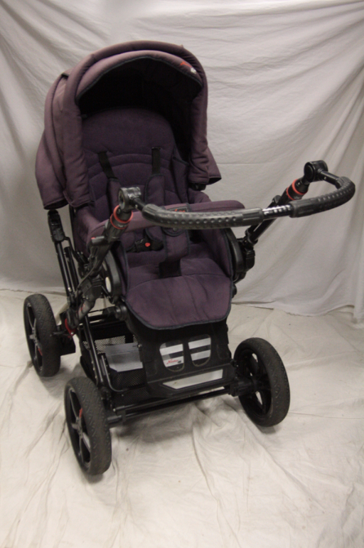 Универсальная коляска для езды по плохим дорогам. Надежность механизмов и плавность хода точно не оставят Вас равнодушными! Коляска представлена в фиолетовой расцветке.