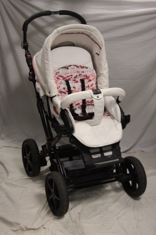 Прекрасный вариант прогулочной коляски для эксплуатации на пересеченной местности и в плохих погодных условиях. Коляска представлена в белой экокоже на стильной черной раме, что, бесспорно, выделяет ее из толпы!