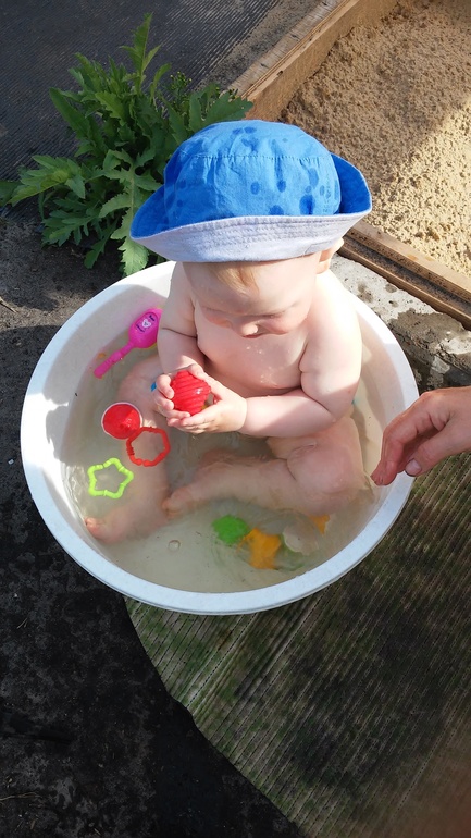 После тазика сегодня было еще озеро, но в озере купаться не стали, только помочили ножки и немного попу.