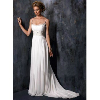 Стильное, очень нежное свадебное платье с открытой спиной на шнуровке с небольшим шлейфом. Выгодно подчеркивает грудь, стройнит, удлиняя силуэт. Украшено стразами и пайетками. Отлично подойдет для беременных невест.