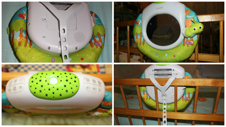 - Использование как на кроватке благодаря креплению в виде ремешка, так и на тумбочке благодаря специальной ножке;