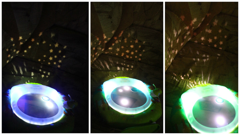 А его меняющееся мягкое свечение в зеленом и голубом тонах, не даст бояться малышу темноты. А нам как мамочкам, при таком свете удобно наблюдать за малышом, ведь она хорошо освещает комнату и вы сможете укрыть малыша, если он спорхнет с себя одеяльце, это я к примеру.