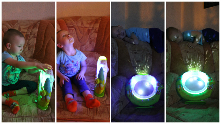 Эх, я так жалею, что не видела его ранее он был бы очень кстати уже с рождения малыша. Хотя, этот ночник порадовал не только сынульку, но еще обязательно порадует нашу будущую крошку, которая пока в животике, но уже слышит все мелодии, излучающего волшебного ночника. Уже в животике привыкает к нему)).