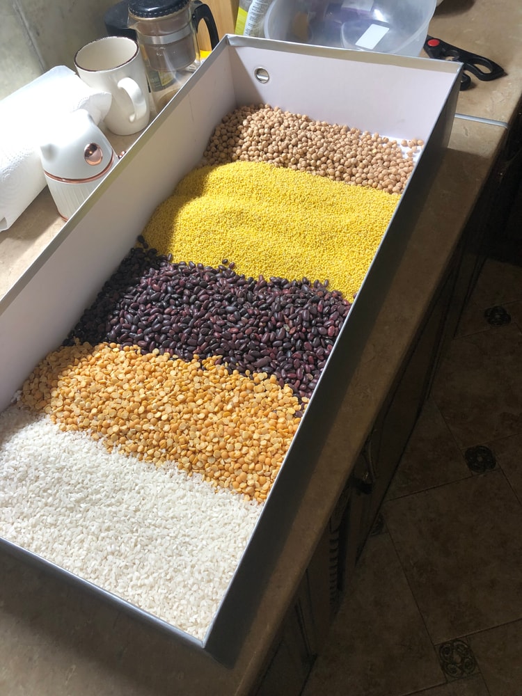 Зашла мне идея с коробкой, но платить 5-6 тыс за столик ой как душила жаба. Заказала на озоне самые дешевые крупы, мне же их не есть, и насыпала в коробку от сапог. Получилось чудесно. Больше всего ребенку понравилась фасоль и пшено.