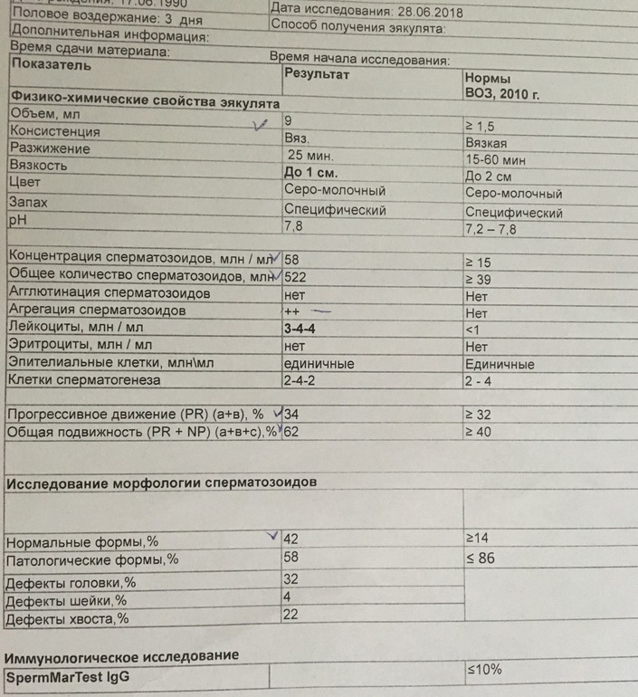 Девочки подскажите, что за гадость агглютинация сперматозоидов(склеивание)? Пришли результаты спермограммы у мужа, обнаружили эту хрень...У кого такое было, чем лечили и вообще какие варианты с этим зачать ребенка?Помогите расшифровать спермограмму, фото скину в комментарии....И что это за аномалия головки 45%, шейки 12% и хвоста 3%?