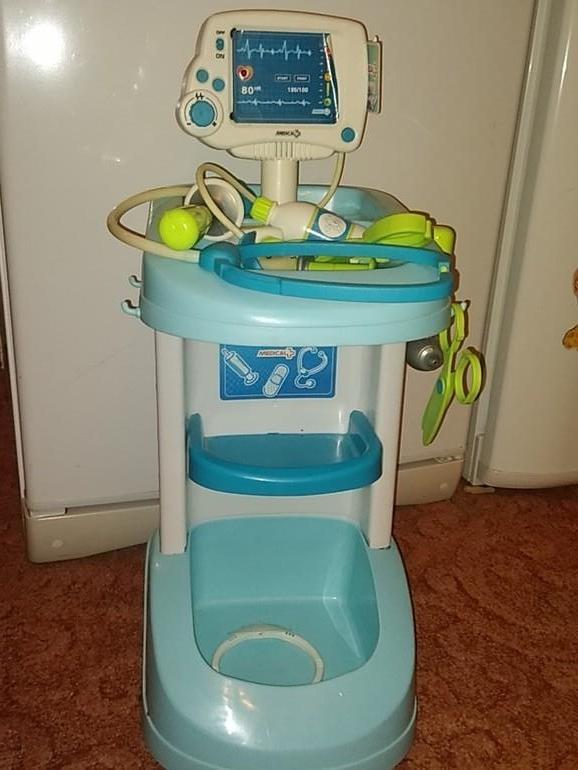 Тележка интерактивная электронная Smoby, с набором инструментов для юного доктора. Вес 2 кг, высота 60 см, производитель Франция.