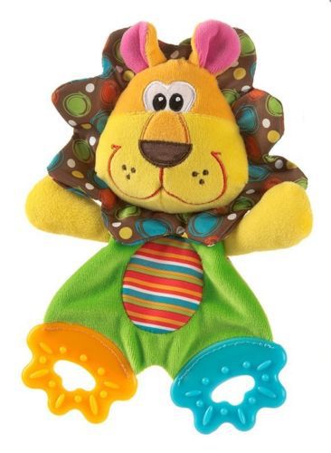Заказывала сразу две: льва и девочку. Заказом довольна. Дочери очень нравится девочка. Ножки можно грызть, шуршат. Яркая. Есть один минус, нет кольца, за которое можно цыплять на кроватку или коляску, но при помощи ленты, кольца и иголки я все исправила. Швы ровные. Не пахнет. Не линяет.