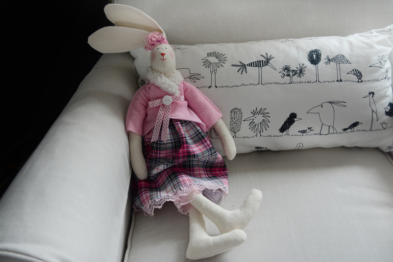 В продолжение к посту о Викином мини дне рождения. Вчера подруга презентовала Викки куклу тильду Крольчиху. Лена заказала ее у мастера Лены Вишни для Викки. Это конечно был сюрпирз! Просто эстетический восторг, я бы сказала. Кукла сшита из льна, розовое пальто из фетра с меховой оторочкой, панталоны, очень красивое платье в клетку с кружевом. А какая повязка бант на голове! Это просто произведение искусства. Смотрим на нее и любуемся. В интерьер вписывается просто идеально. Раньше я как-то мало обращала внимания на тильд, но они все же разные при внешней похожести, казалось бы... да, очень разные.