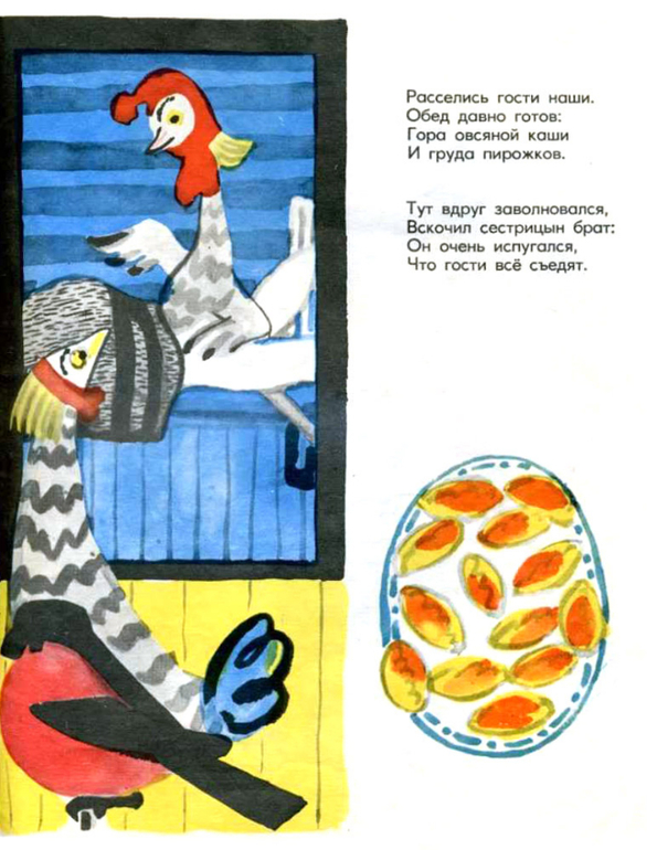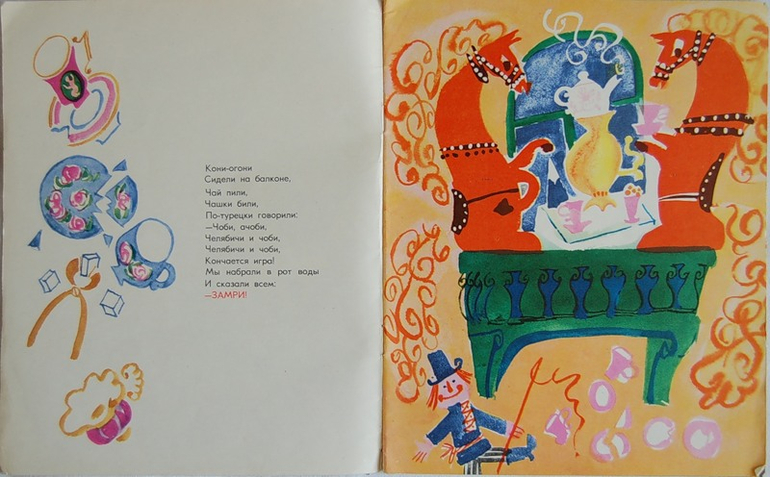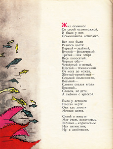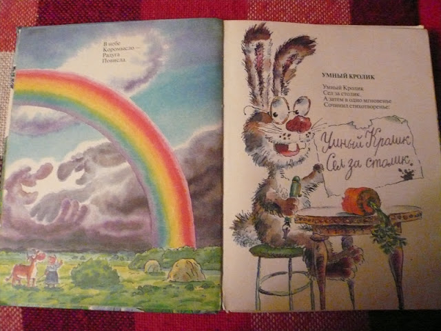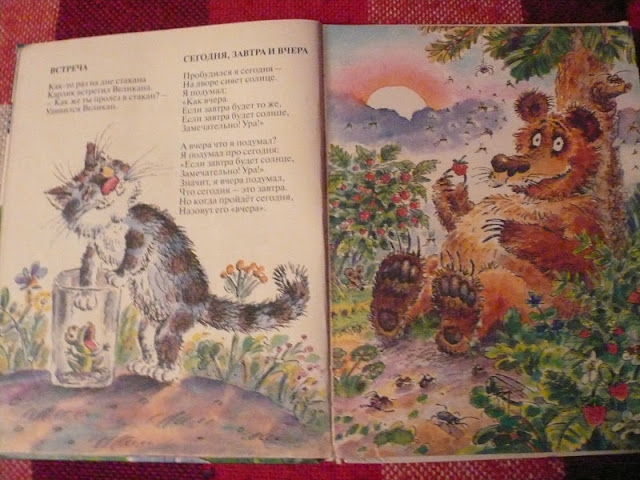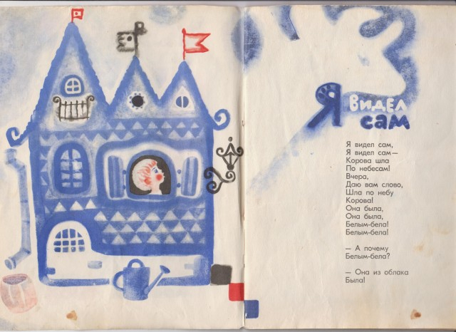 Невозможно передать сколько я пережила в поиске именно этого издания! Проблема была в том, что я не знала ни названия книги, ни иллюстратора, ни издательства, ни года. Только автора, визуально несколько картинок и некоторые стихотворения из сборника. Кажется в этом виде книга издавалась лишь однажды. Аналогов нашла много, что-то даже купила, но все не то! Безусловно, сами стихи Орлова хуже не стали, но визуального удовлетворения получить я не могла никак. У Лавровой иллюстрации немного странные, с преобладанием сине-красно-черных цветов+немного желтого, но эти картинки абсолютно детские. Книга эта пережила в моей семье очень много лет, однако буквально за год до рождения моих детей она странным образом исчезла. Выкинуть ее никто не мог, если только где-то забыть или отдать на время, но книга так и не вернулась обратно :(( Издание заслуженно занимает первое место в ТОПе как самая-самая ожидаемая, но в тоже время, пожалуй, и как самая маловероятно переизданная в будущем. Даже посещают мысли о распечатке имеющихся сканов на цветном принтере.