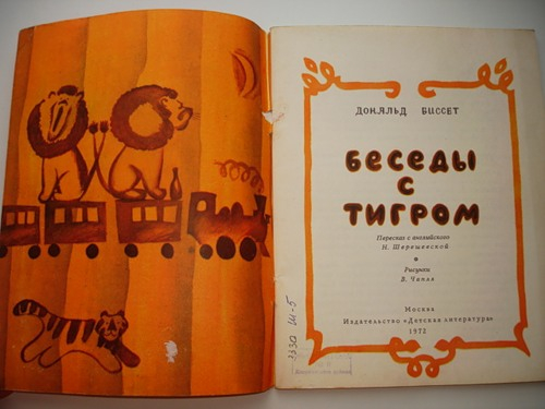 2. Биссет Дональд "Беседы с тигром" Детская литература, 1972. Пересказ с английского Н.Шерешевской. Художник В. Чапля.