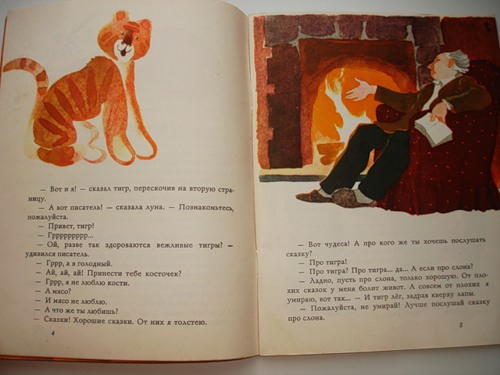 С этой книгой тоже были проблемы. Дело в том, что даже в моем детстве она была без обложки, поэтому я помнила только визуально картинки на разворотах. Увидела однажды у кого-то из девочек этого тигра и начала копать, копать... в итоге выяснила название и автора. А теперь нашла и всю книгу! Переиздать ее необходимо и реально, на мой взгляд. Сейчас Речь переиздает Шергина с иллюстрацией Чапли, поэтому его вспомнить было бы крайне своевременно. А само произведение переиздавали совсем неуспешно - в мягком переплете, на газетной бумаге и без иллюстраций. У меня есть эта книга, но она имеет абсолютно "дорожный" вид (из тех книг, которые не жалко случайно забыть в транспорте). Кажется есть и другие варианты, в сборниках, но это очередные мультяшные поделки, которые лично меня не то что не устраивают, а просто даже отталкивают своей чрезмерностью и безвкусицей. Как говорили в народе в конце 19 века "каликатура", а еще проще говоря, халтура! Хотелось бы атмосферного чтения!
