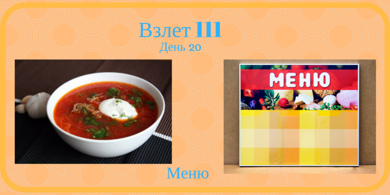 Получились у нас рассольник и борщ; копченое мясо; тушеное мясо с фасолью; эскалопы; шашлыки; котлеты, мясо с подливой, картошка с тушенкой.