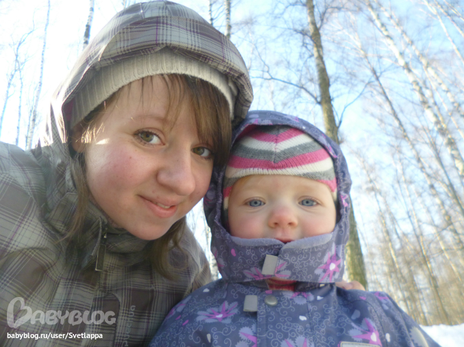 но, с горем пополам выгулялись пару часов) прочесали весь лес, накормили гулек и вернулись на горку - повеселела моя плаксюшенька)накаталась а потом с сухарем пересушенным во рту поехала домой)) за что соседки заругали, мол в тако мороз есть нельзя! горлышко застудим! мне кажется мы быстрее горло застудим, если истерить будем на улице...заколять горло тоже надо!))))
