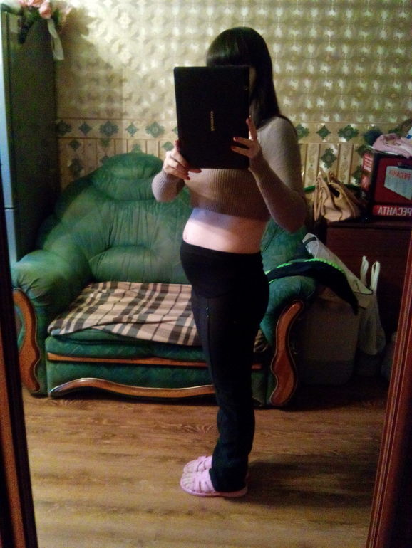 . Плохо стала спать, раньше ходила как сонная муха, а теперь за ночь раз 5 просыпаюсь и лежу, не могу уснуть. На последнем приеме в жк врач сказал есть фрукты, ни каких витаминов не назначил. Я пропила витрум пачку, он сказал больше не пить. Стали болеть вверхнии боковые зубы, как будто нервы оголеные. Думаю сходить купить кальций д3 никомед попить, хоть и врач не прописывал, думаю хуже не будет. И наконец я купила себе штаны для беременных, так удобно))))). Ну и фото на память