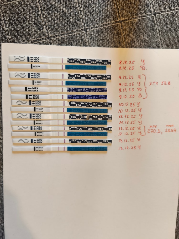 14 дпо (не дотерпела до 15, динамика через 3 дня, сдаю через пару часов после завтрака в 11 утра) - 55 Мме…