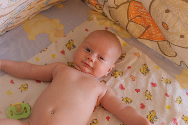 А это наш герой, утром одаривал меня улыбкой)) если обратить внимание в уголке глаза гной, хотя я его только что убирала, а он снова выступил...