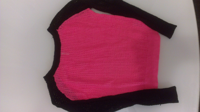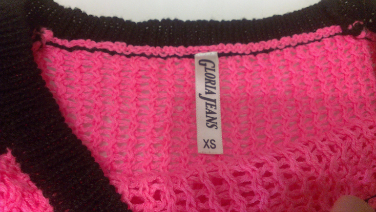 - КОФТА GJ, маркировка XS, на 40-46 -достаточно широкая, дырчатая вязка, яркий колор, 100р