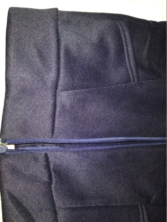 --юбка ниже колена Черная, из плотного трикотажа оригинальной выделки - подушечками. Спереди 2 складки, сзади пояс на резинке присборен и на молнии, рр S, 200р