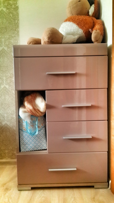 Поскольку нам все равно нужно куда-то сложить детские вещи, а переодевать ребенка/менять памперсы на кровати я не могу (как уже писала, слабая спина), вопрос с комодом был решен сразу. В качестве особых требований были следующие: