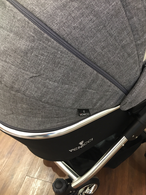 Дизайн у коляски простой и лаконичный (ничего лишнего), смотрится Вениччи дорого и стильно. Сочетание черного и серого для мальчика идеально, а хромированная рама дает дополнительную изюминку.