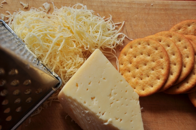 Приплюсовать ломтик острого сыра (Чеддер, Маасдам и т.п.). Свернуть ролл: