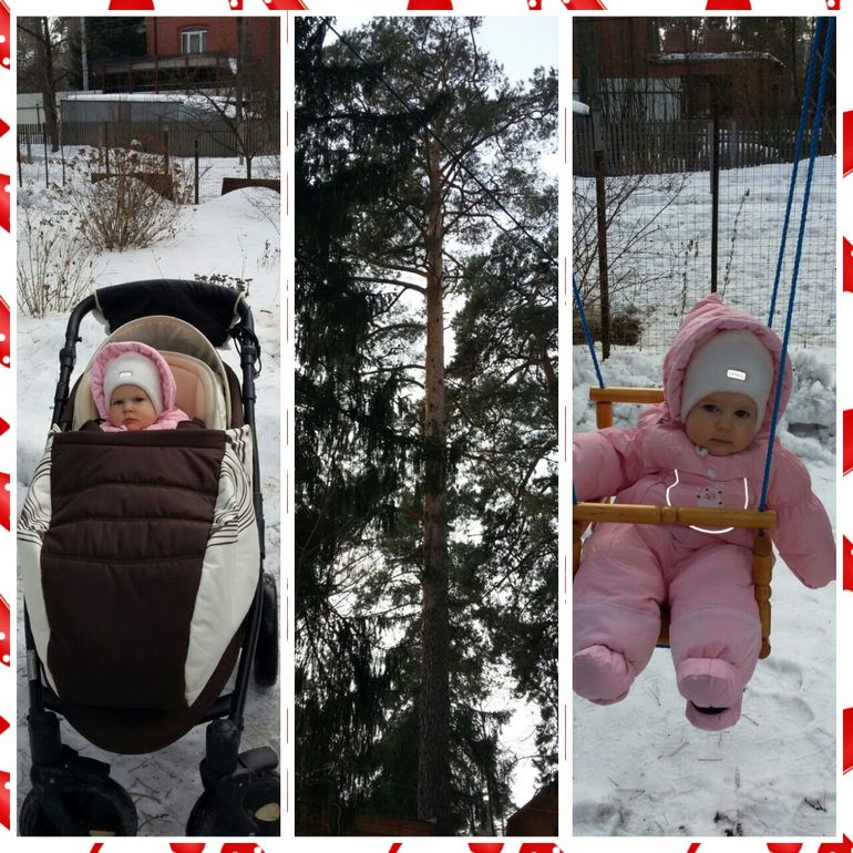 Мы хорошо отдохнули, много гуляли, повесили ей там качельки, но Лера пока не вдупляет в свое счастье, рассматривали соседских собак- лабрадор и немецкая овчарка , скачущие как кони, жарили шашлык. Напоследок Лера опять полетела с дивана, орала минут 5, потом опять стала щемиться к краю дивана...видимо не поняла, что произошло, решила еще раз попробывать. Да и дома потом с середины 2х метровой кровати к краю за несколько секунд передом доползает, а в другие стороны никак...сразу ноги не слушаются.