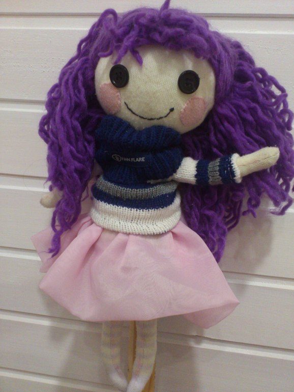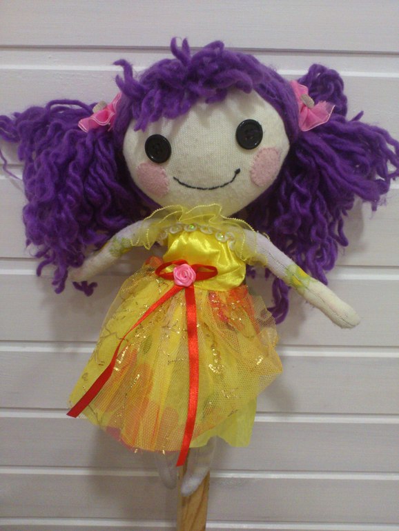У куклы снимается подгузник и шапочка, а шапочка похожа на пирожное с вишенкой) А на волосах у нее очаровательный хвостик) Такая вот лапочка, малышка.