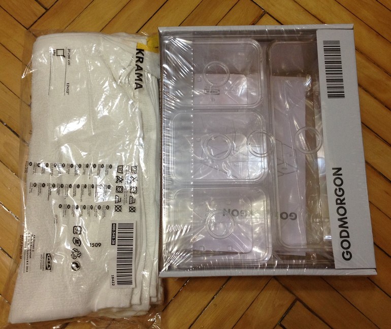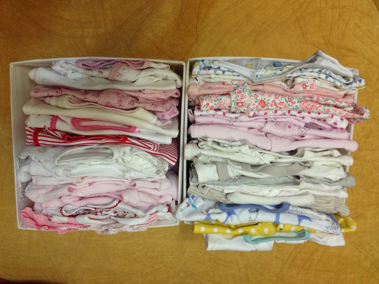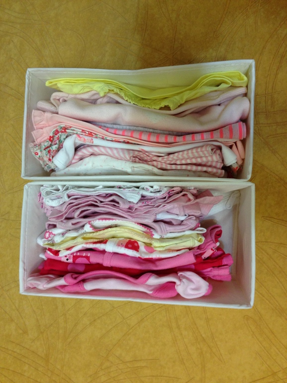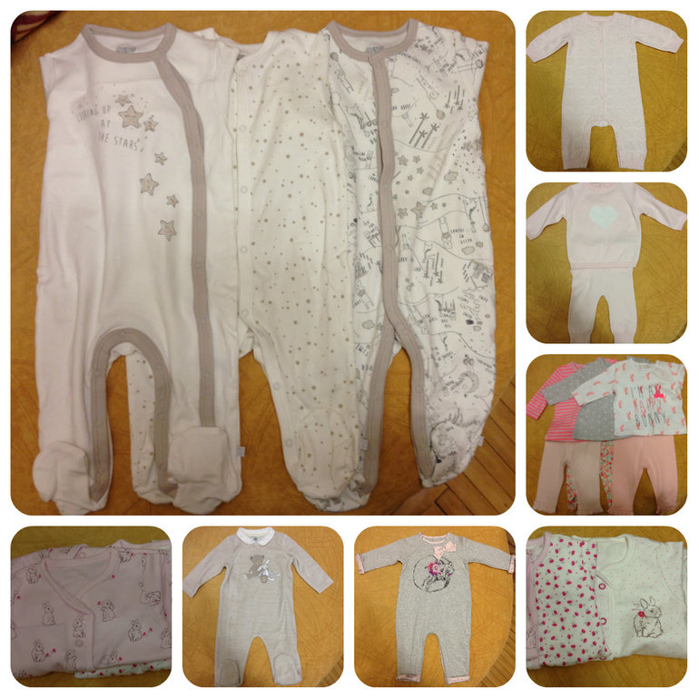 Из одежды куплено все до 6-9 месяцев. В основном брала слипы,боди-только с запахом, чтобы не мучить ни себя,ни ребенка. В икее купила специальные ящики для хранения и все уже уложила по возрастам и типу одежды.