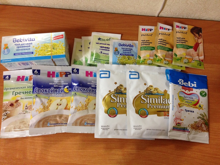 Также у меня накопились пробники каш,чая и молочных смесей: