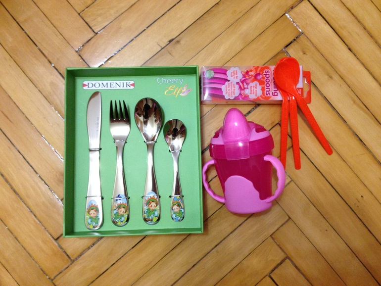На более страший возраст уже куплен поильник и набор вилок-ложек: