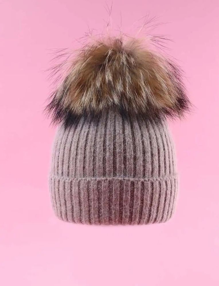 Новая шапка на ОГ 52-54 с большим (съёмным) пумпоном из натурального меха енота.