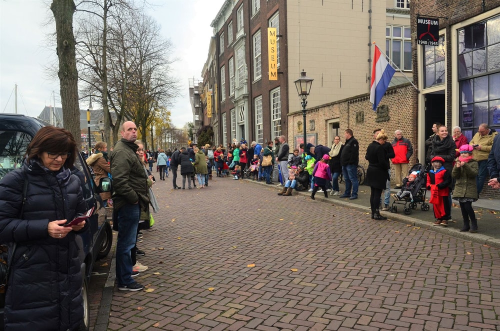 Я в это время изучала один из старейших голландских городов Дордрехт и была удивлена потоком детей разного возраста, устремленных в центр города. Это был буквально поток, Гольфстрим. Совсем маленьких везли в колясках, дети побольше шли сами. У всех были яркие береты с цветным пером, а у многих - бархатная одежда пажей, как у "Черных Питов". Машины и велосипеды с улиц исчезли, будто их не было вовсе.