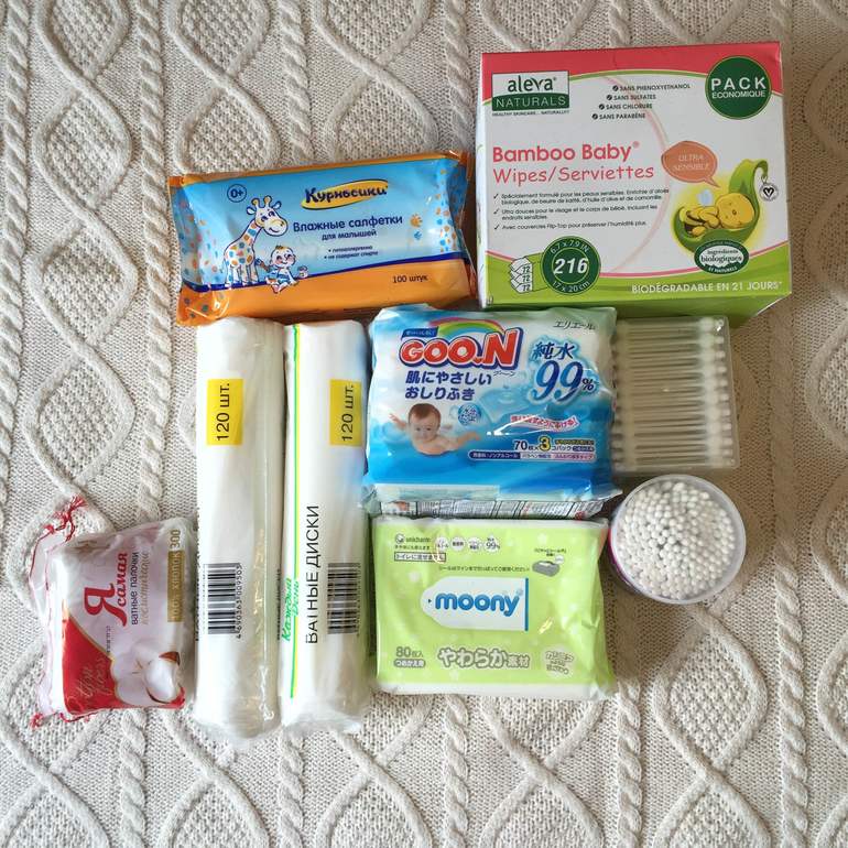 4. Разные влажные салфетки, на пробу (Муни, Гун, Курносики и гигантская упаковка с айхерб). Салфетки сухие (пока не покупали).