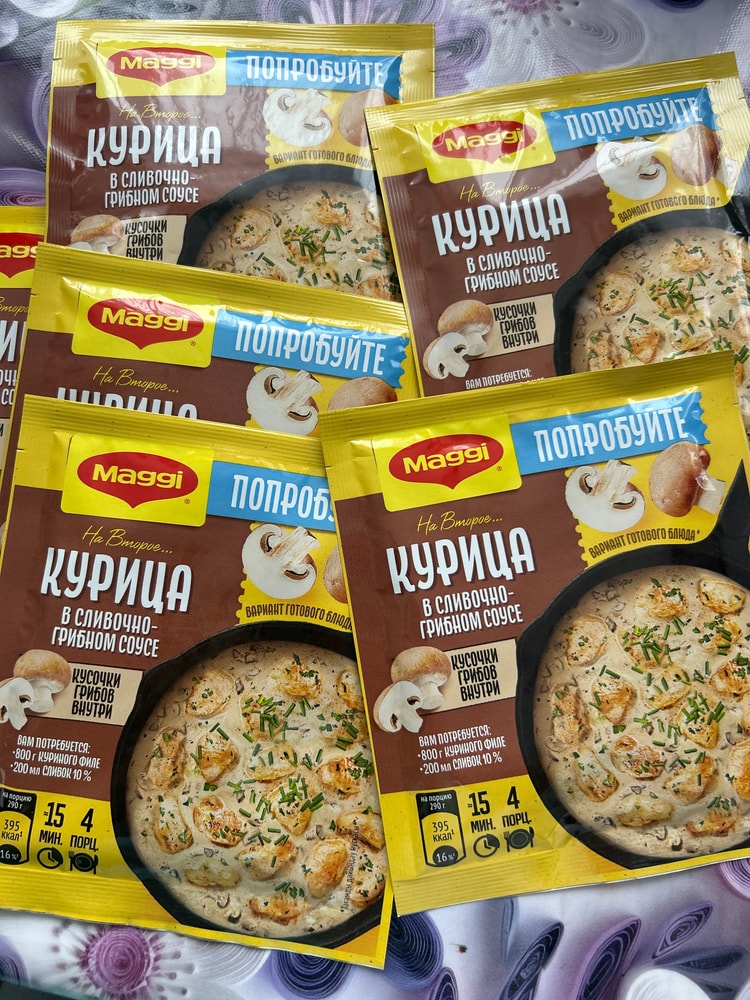 Моя мама вообще вполне адекватная бабушка, и чего-то подобного я ожидала от свекрови например, но не от нее ))). В общем по воскресеньям она приезжает к внуку, посидеть с ним. Мы в это время с мужем ездим за покупками и по киношкам. К нашему приезду она обычно готовит что-нить вкусненькое)))). Все прекрасно. И вот тут второе воскресенье подряд, она готовила курицу в сливочном соусе,с приправой магги вот такой: