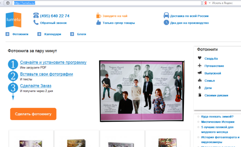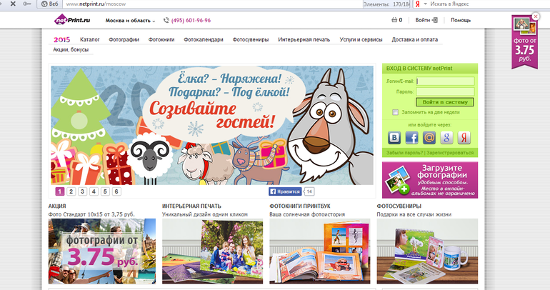 Этот сервис фотопечати в лучшую сторону от других отличается своей понятностью. Сразу же после посещения главной страницы становится ясно, каков ассортимент и что можно заказать. Ассортимент, кстати, достаточно широкий по сравнению с остальными. Тут имеется заказ и простых фото, и календарей, и фотокниг, и что немаловажно остальных приятных мелочей типа различных фотосувениров.
