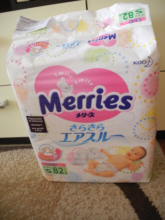 Подгузники MERRIES S (4-8кг) 86+2 шт. 925 рублей + 100 доставка