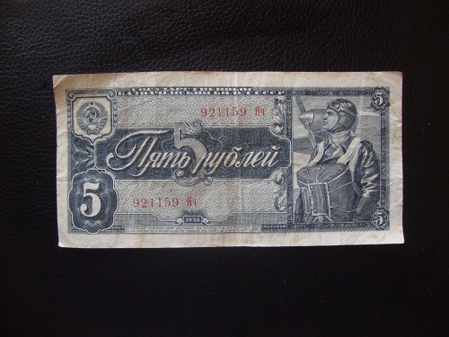 Государственные казначейский билет СССР "Билет 5 рублей 1938".