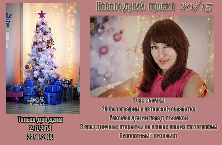 Предлагаю уникальную возможность!!! Новогодние студийные фотосессии по цене всего 1000 руб/час.В стоимость включены работа фотографа,аренда фотостудии КЛЮКВА ,100 фото из них 10 в ретуши.Есть услуга визажиста- +500 рублей к стоимости