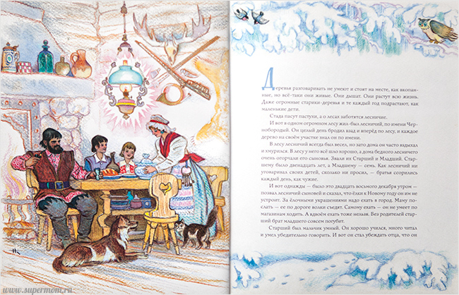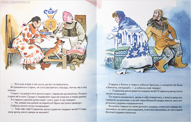 Текста здесь поменьше, чем в Морозе Ивановиче. Книга напечатана на немелованной бумаге, формат А4, тонкая обложка. Можно смело читать с трех лет, а то и пораньше.