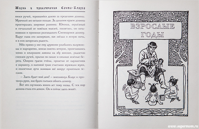 Это не простая книга. Это попытка создать мифологию своими руками, рассказать волшебную историю Санта-Клауса с самого рождения. Историю о том, как Санта появился на свет, как рос в волшебном лесу в окружении добрых нимф, как он впервые решил создавать игрушки для маленьких детишек, как появились помощники-олени, и как зародилась прекрасная традиция - дарить подарки на Рождество.