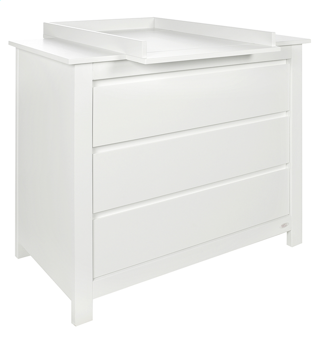 Комод идёт со встроенной пеленальной доской, которая потом снимается. Сейчас на ней лежит пеленальный матрасик. Для ящиков комода заказала коробочки SKUBB из Икеи.