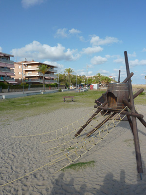 Там же порт, надувной батут для детей, прыгалки всякие. Бесплатные детские площадки тоже есть, 4 штуки: привычного формата (лесенки, горки, сетки), в форме корабля и в форме тонущего корабля.