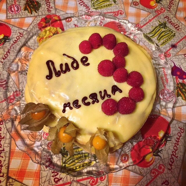 Первый свой торт после родов я сообразила в начале декабря, 6 числа, в честь возвращения мужа из длительной командировки на Дальний предальний Восток) это сметанник с малиной и маком) обалденный вкус ! Пахнет летом)