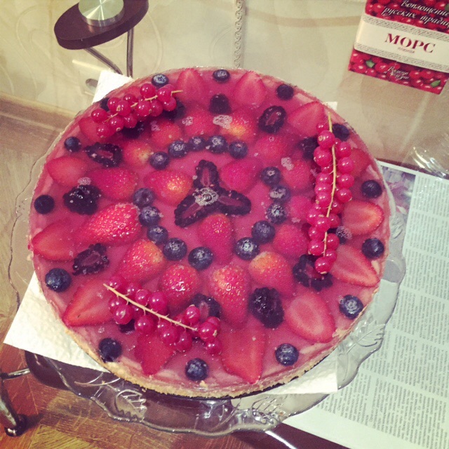 С денм рождения нашего папу мы поздравили вот таким пирожком со свежими ягодами и кремом из маскарпоне и сливок