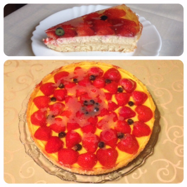 Летом торты я не стряпала, т к было жарко, да и все разъехались - особо некого было угощать) а вот осенью к приезду старшей дочери мужа я сделала супер-вкусный торт, который потом повторяла еще трижды - клубничный с сырным кремом и желе) супер-легкий в приготовлении, очень красивый и свежий какой-то что ли))) за счёт большого количества желе)