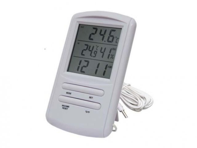 Кроме того, купили электронный гигрометр, термометр. Удобная штука, позволяет следить за температурой и давлением. Пока до конца не разобрались, но уже увидели там прикольную функцию (и на мой взгляд, нужную): выставляешь допустимые пределы влажности и температуры и когда данные будут выходить из этих пределов, то прибор запищит, тогда надо будет регулировать.