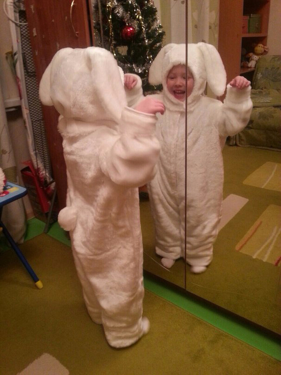А еще у нас появилась новая мастерица по пошиву гимнастических купальников.