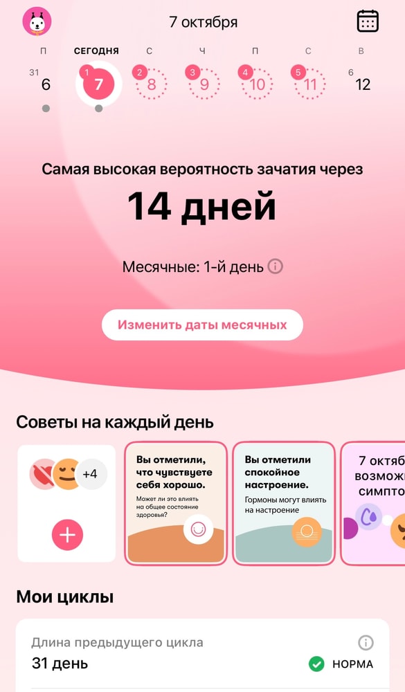 *Последний день месячных: 7 сентября 2025;
