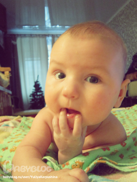 Ну вот,нам уже почти 5 месяцев(а если точнее,то 4 месяца и 21 день).столько всего интересного произошло за это время,столько радости,счастья,ну и конечно же и без минусов не обошлось...1,5 месяца мой мальчик болел,был сильнейший кашель.Ночью я практически не спала,слушала как он дышит.1-го января нас забрали на скорой в больницу...из-за того что я сказала что тоже болею(хотя у меня был небольшой насморк и всё),нас отвезли в инфекционную.Савушке кололи уколы,делали ингаляции,давали мекстуры.Но там было очень много людей без российского гражданства,полис и т.д. которые неизвестно чем болели.Мне стало страшно и 4-го января я написала расписку,схватила ребенка и убежала.Дома сама доколола уколы(слава богу имею мед.образование),купили небулайзер и мой малютка выздоровил.На этом проблемы не закончились,мы 2 месяца ждали своей очереди на зондирование слезного канала,16-го января нам все сделали,но глазик так и не перестал гноится.Сходили к врачу,выписали капли левомицитин,надеюсь поможет и не придется делать повторное зондирование.Окулист запретила пока делать прививку,сказала подождать недельку.Через неделю сдадим кровь и если все будет хорошо,то нам сделают первую прививку.